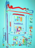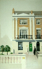 Right: Classical and modern 3 Chiswick High Road, the offices of Michael French Associates, as interpreted by two different artists.